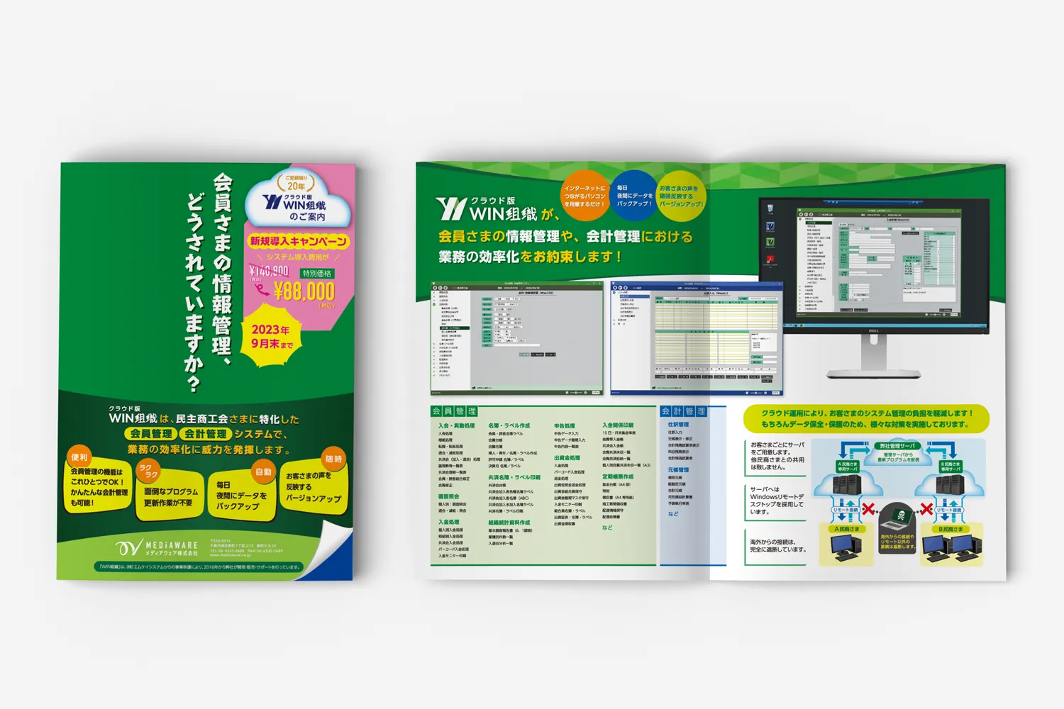 古いCOBOL版WIN組織を使い続けているユーザーへ向けた、クラウド版への移行を勧めるキャンペーンのパンフレットなども制作。